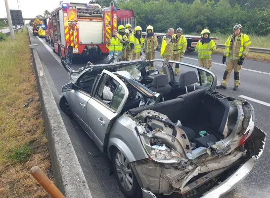 De brandweer moest de bestuurder van die auto bevrijden. Het slachtoffer werd naar het ziekenhuis gebracht. De automobilist in de andere wagen kwam er met de schrik vanaf.