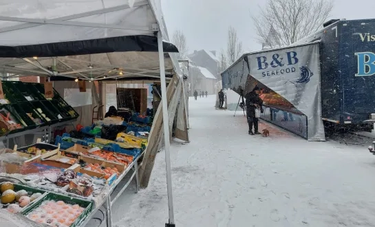 Besneeuwde markt in Westerlo met slechts 15 kramen