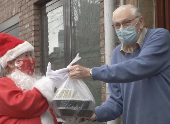 Bijeenkomsten zijn natuurlijk nog steeds verboden, en dat betekent dat ook de dienstencentra zich met Kerstmis moeten aanpassen. Op heel wat plaatsen organiseren zij elk jaar kerstfeestjes voor bejaarden of mensen die eenzaam zijn, maar die gaan dit jaar dus niet door. Om het leed een beetje te verzachten, kregen een aantal Mechelaars dit keer een kerstmaaltijd aan huis bezorgd. Door de kerstman, en die kwam dan ook nog eens langs op een bakfiets.